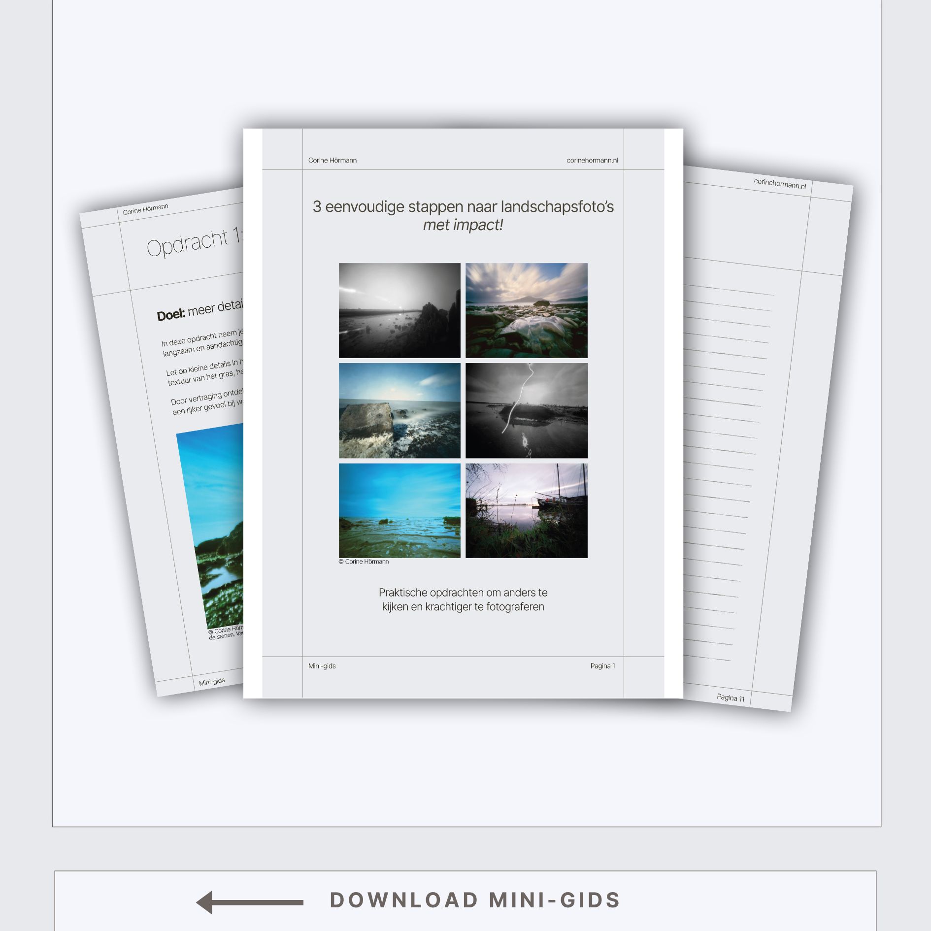 Met meer dan 12 jaar leservaring op de Fotoacademie, als educator bij Noorderlicht en via talloze workshops en cursussen, inspireert Corine jong en oud om hun eigen blik op het landschap te ontwikkelen, met oog voor techniek, creativiteit en persoonlijke verhalen.